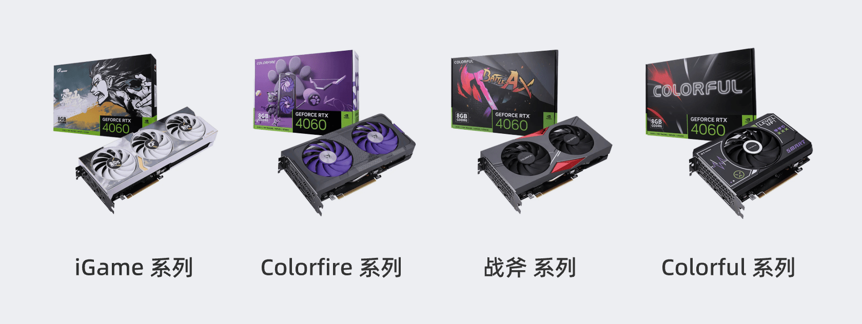 每一个品牌会根据不同的设计思路推出不同的显卡系列,为用户提供更多的购买选择。而第三方品牌的系列并不是指显卡的芯片名称,比如同样是 RTX 4060,七彩虹就退出了 iGame、Colorfire、战斧、Colorful 等不同系列。