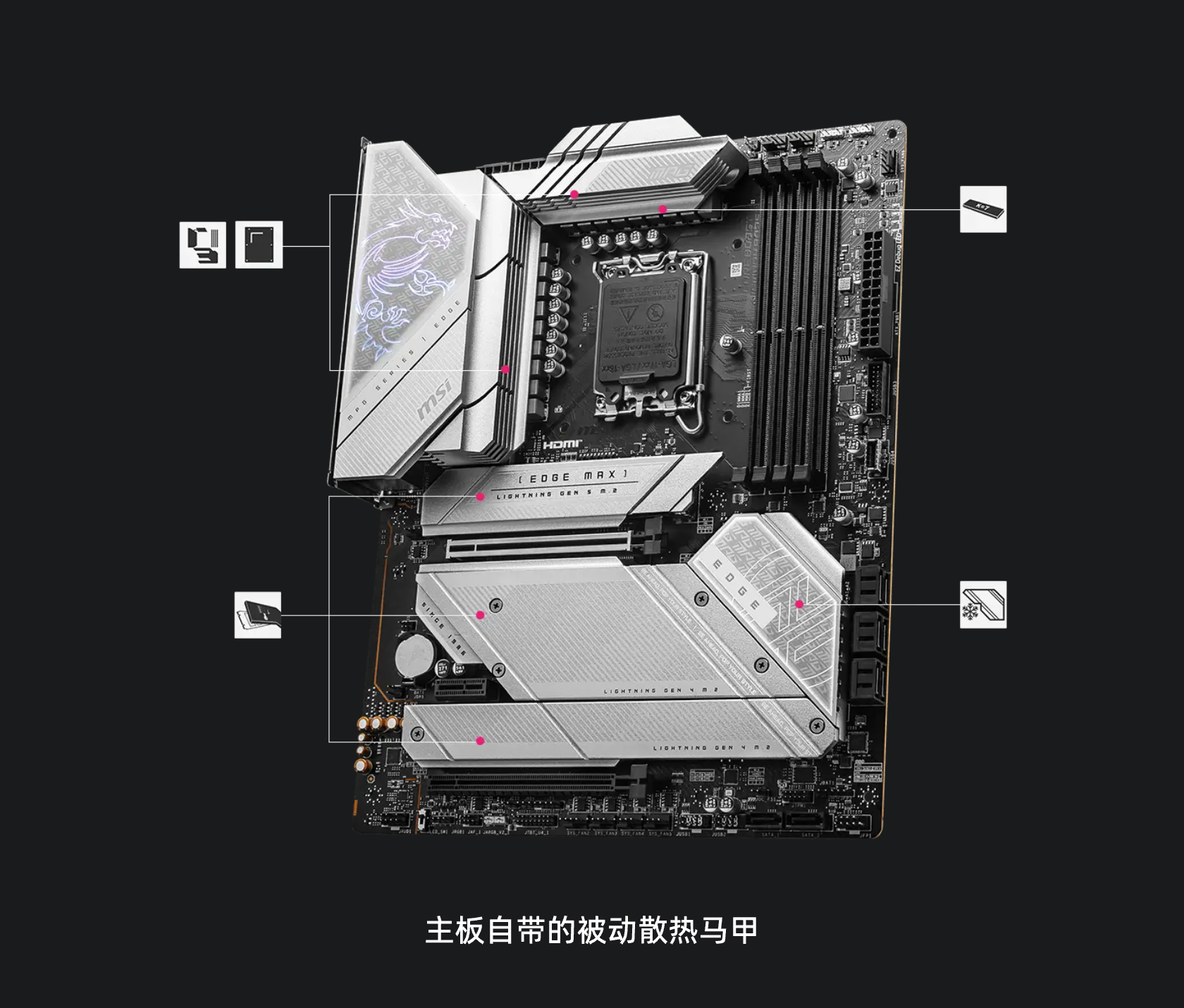 主板散热用被动散热,不管是主板上覆盖的金属装甲,还是硬盘上覆盖的散热马甲,这些只传导、不引流的散热都是被动散热。比如主板上额外覆盖的金属散热马甲,或容易发热的高性能内存条、M.2 硬盘也有自带的散热马甲。