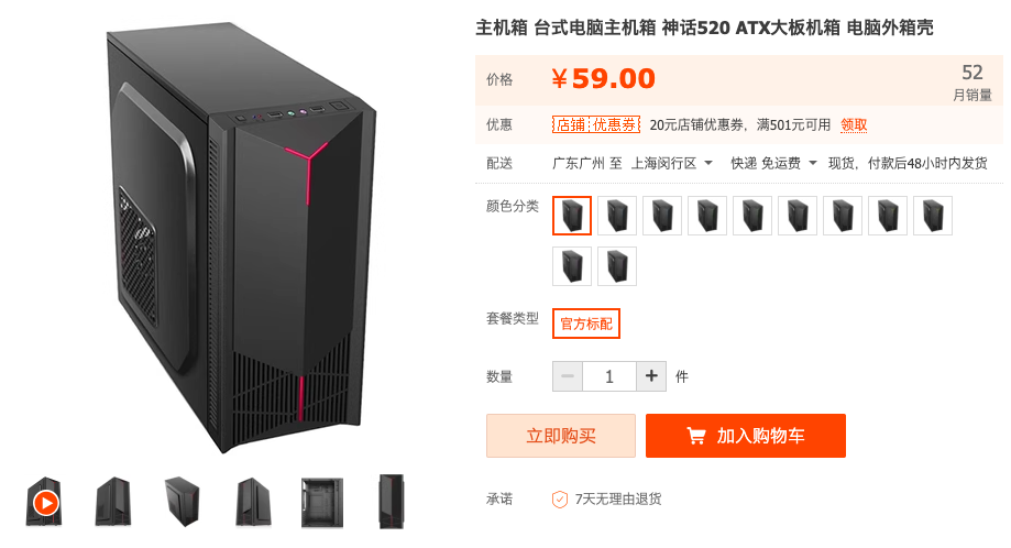 机箱 Case,是用来容纳上述所有元器件的容器,前面板还可能包含了若干按钮 (开机、重启等) 和USB插口。