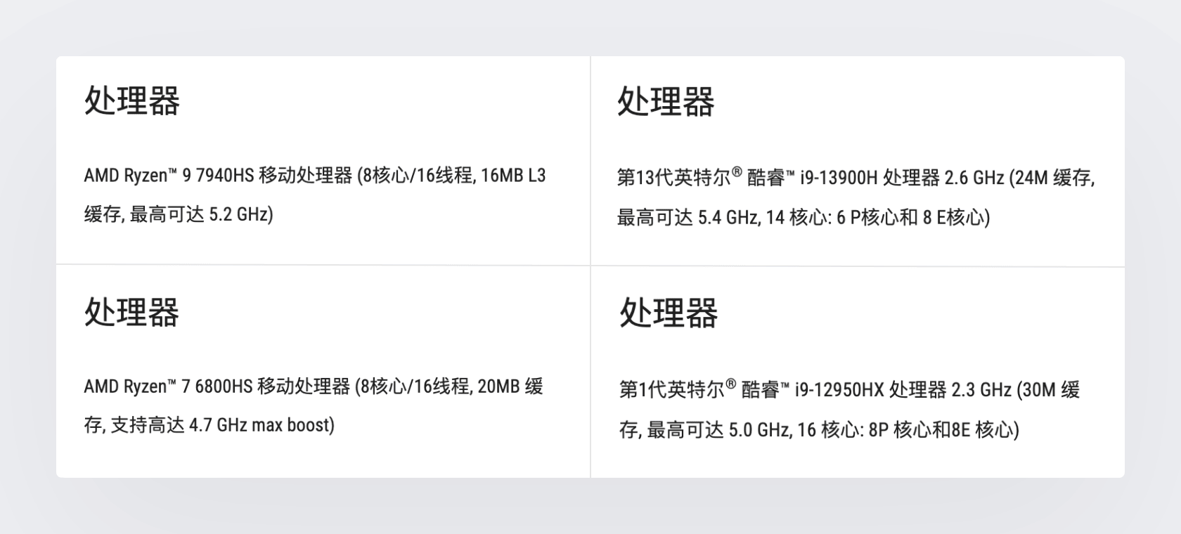 - 架构:主要指CPU 的核心架构,即CPU内部电路设计的模式和方法,不同 CPU 品牌都有自己的设计思路所以会以不同的名词命名,比如 Intel 的 Lake系列,Amd 的 Zen系列,不同架构设计会带来不同的运行效率。