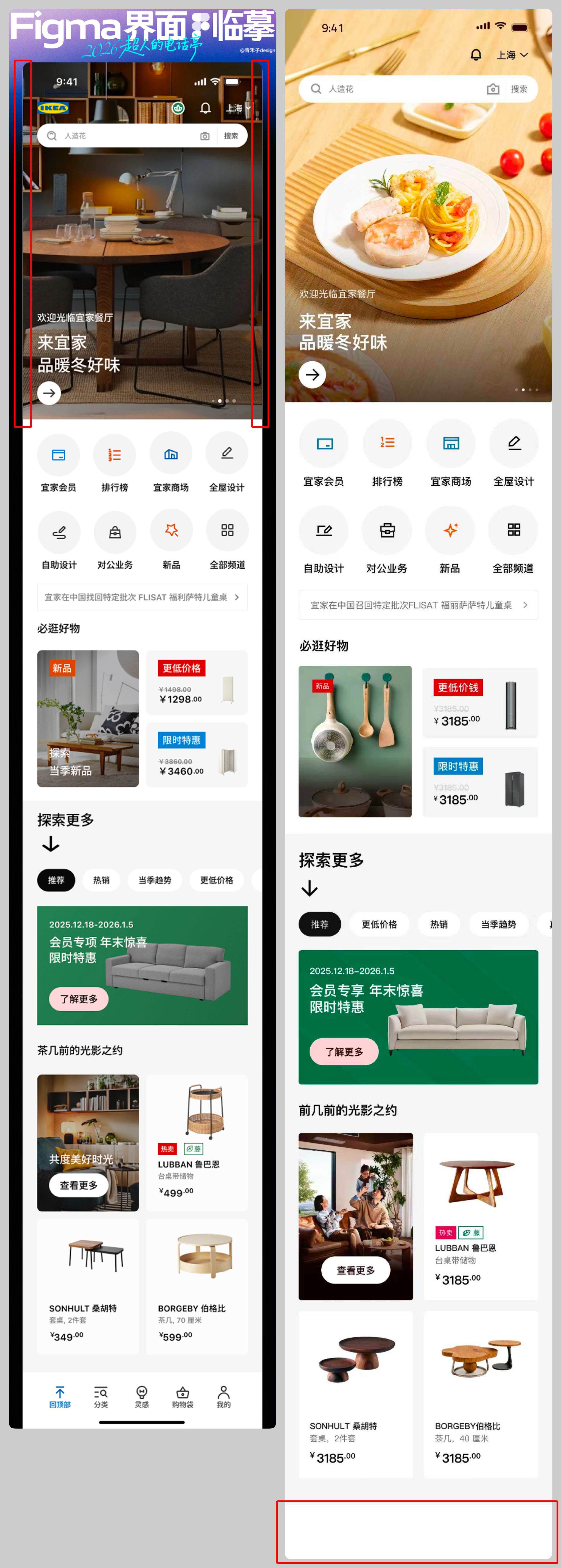 根据提供的宜家主页截图,使用Figma的课程操作演示,完成该页的临摹练习。如果完成第一页后还有时间,也可以继续完成 “卷王” 文件夹内提供的其它界面截图的临摹。