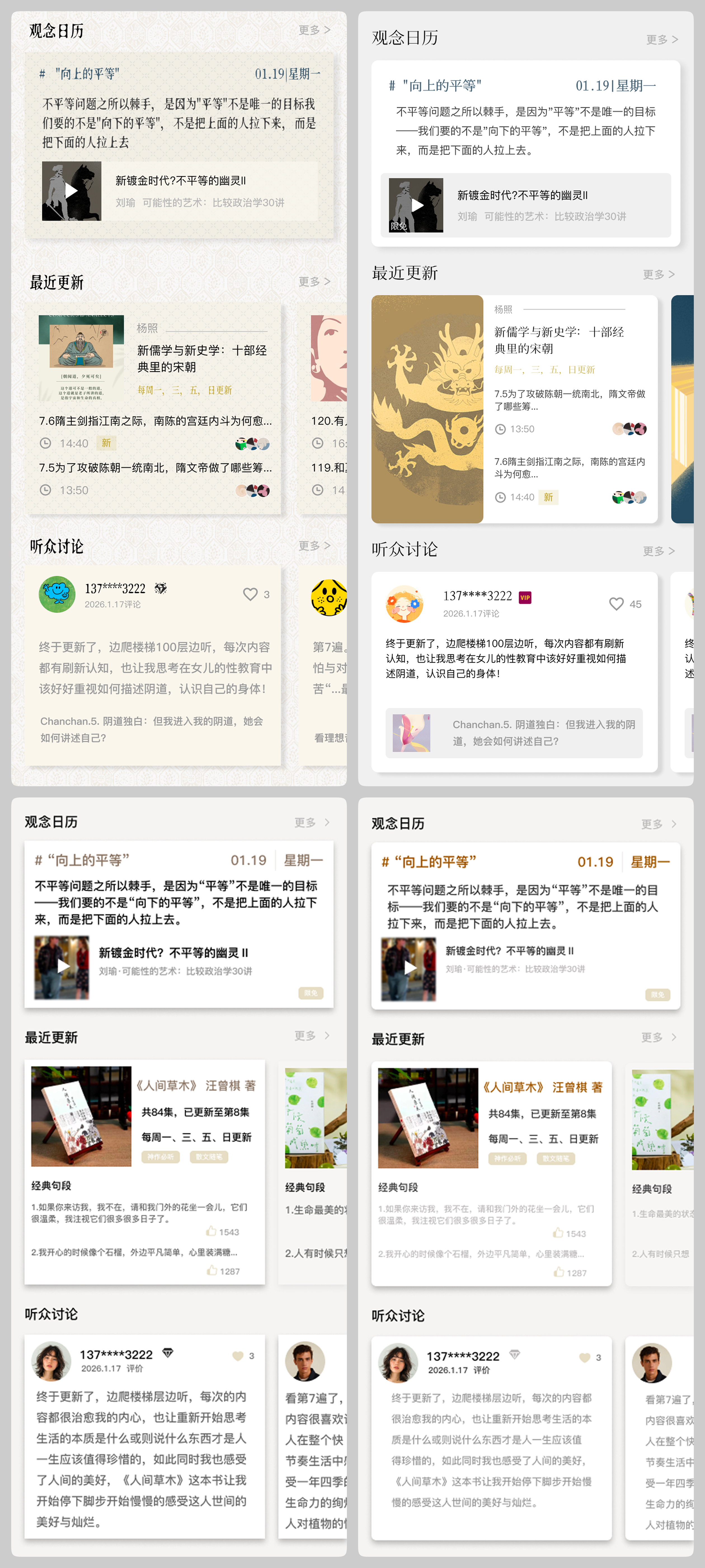 最后再分享一个经验观点,那就是点评作业时最麻烦的一点就是 —— 没东西能点。因为当一套作品细节处于崩坏状态时,讨论改版思路、设计风格是没有意义的,因为现有设计水平和质量没达到讨论更高层次问题的时候。