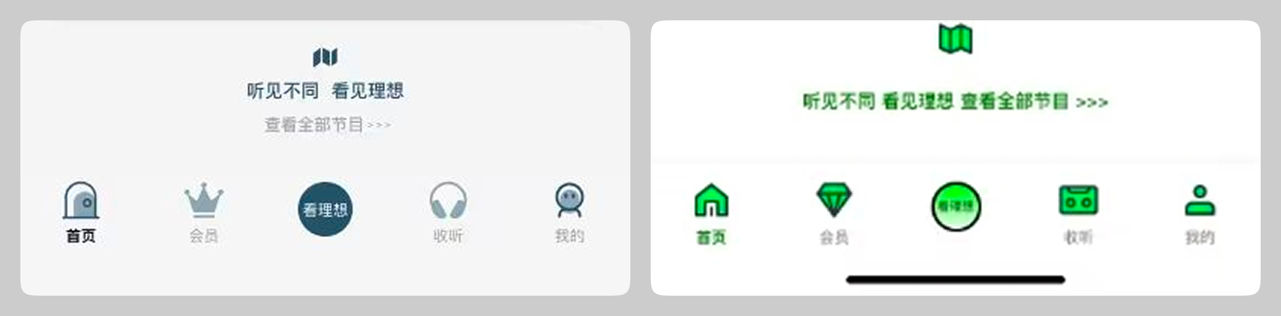 设计里我们还要表现“交互性”,而不是纯静态的图例。比如底部导航包含选中和未选中的状态,那么它们就应该有清晰的区分。但是很多同学的设计是没做这种对比的,那么页面的可交互性就没了。